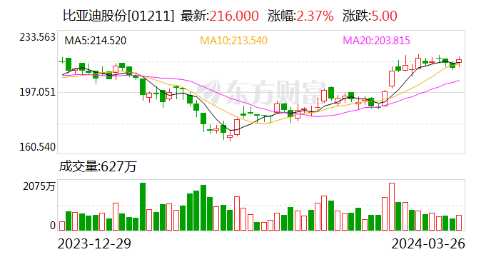 在利润分配方面,考虑公司整体经营情况、财务状况及股东利益等综合因素,比亚迪拟向全体股东每10股派发现金红利30.96元(含税),现金红利总额约为90.12亿元。