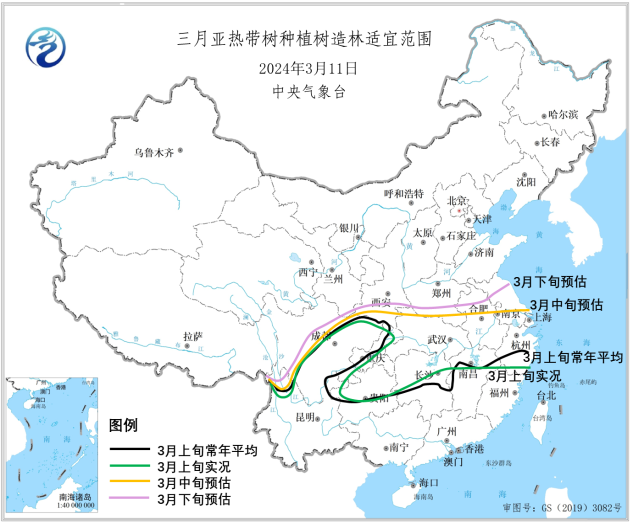 二、3月上旬全国大部气温持续偏低,植树造林时间整体接近常年或略偏晚