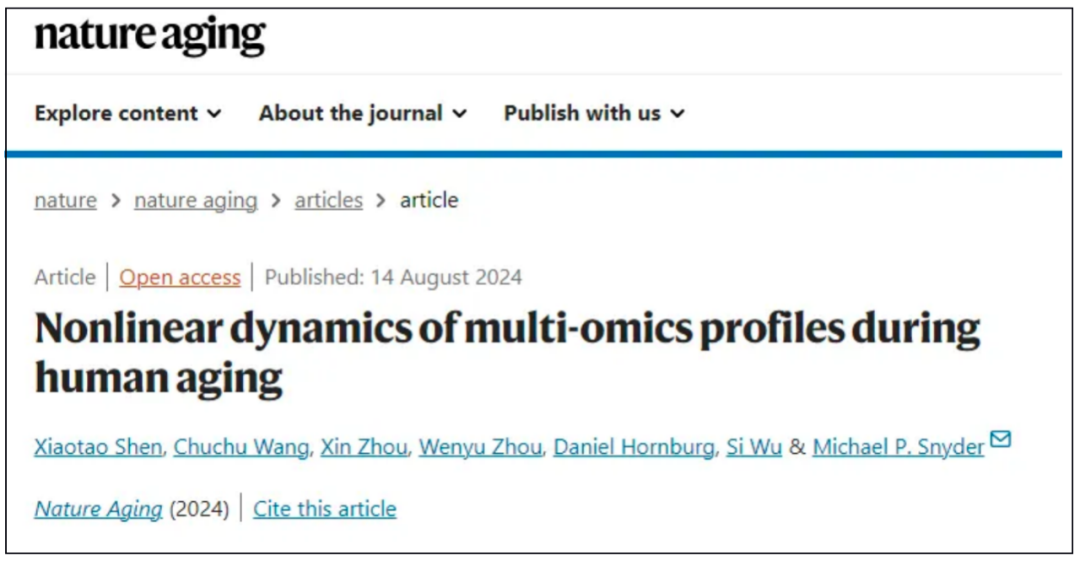 [1]Shen, X., Wang, C., Zhou, X. et al. Nonlinear dynamics of multi-omics profiles during human aging. Nat Aging (2024).